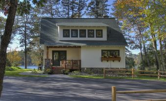 Come visit our newest location, completed in August 2023, Pinecone Cottage gives the classic lake house feel! From the time you enter the covered porch, to when you reluctantly leave this lakes area retreat, you will be taken back in time to those childhood endless summer days. With an expansive 3 season screen porch across the lakeside, you can enjoy everything from morning coffee, evening card games, to watching the sunset over the lake from this west facing gem. The cabin has an open floor plan, that showcases the lake views as soon as you walk in the door. The well appointed kitchen is open to the central dining area, and cozy living area complete with stone fireplace, and this all opens up to the porch with a 16 ft sliding door. The main level also features 1 of the 4 bedrooms and a bathroom with a walk in tile shower. The upper level features two cozy vaulted bedroom suites, one with a stone gas fireplace and built in bed in addition to the queen bed, both have attached baths with custom walk in tile showers. The lower level is all about the camp theme, with 6 built in bunks and an open TV area with giant cushy sectional for movie nights for kids of all ages. The lower level also has another bedroom with a queen bed and a bathroom with a walk in custom tile shower. The full size laundry room is also on this level.