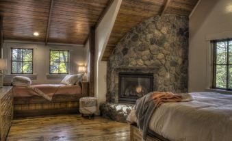 For those of you that need to stay connected, the cabin also includes Wifi, two HD smart TVs and cable, it also has a Sonos music system so you can listen to your choice or music while you relax. And don't worry the cabin might give off a 1950's vibe , but you won't be roughing it, the cabin was done with granite counter tops, wood plank pine floors, custom tile showers and lots of creature comforts such as 3 zone heating and A/C system, 2 gas fireplaces, all new appliances and a Kinetico softened water system.