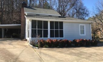 This charming home has a welcoming view of Crowders Mountain and has a very private setting. Couples or families will love sitting outside and watching the birds, squirrels, and sometimes deer that roam throughout this beautiful property. You will find this blissful retreat away from all the hustle and bustle. With beautiful surroundings all around and located close to historical and recreational activities, this is the perfect place to come, relax and unplug.