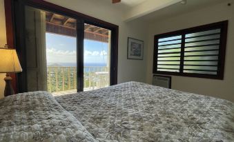 Enjoy the spectacular views from the Balcony overlooking Ocean Bays and Islands all the way to St. Croix. This villa is nestled in the hills with a garden walk to Private Hot Tub. This is a one bedroom/one bathroom with shower. From your bed enjoy breathtaking views of Great Cruz Bay.
