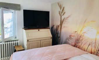 We rent out a large half of our renovated, beautiful country house right on Lake Bottschlotter near Dagebüll in the North Frisian marshland. It has two bedrooms, each with high-quality box spring beds, lying area 180 x 200 and 160 x 200 cm. An open kitchen with a view of the garden and the lake is fully and modernly furnished. A beautiful country-style dining area with a view of the fields to the outer dike of the North Sea. Large bathroom with walk-in shower and underfloor heating. A huge terrace with an unobstructed view over the lake to the horizon leaves nothing to be desired for relaxation. WiFi available.