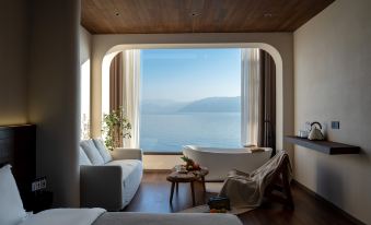 로맨틱 오션 뷰 킹 사이즈 침대 룸