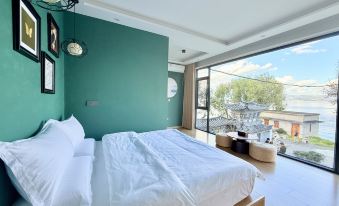 房間正對洱海,這個落地窗開窗户就能看到外面洱海的景色