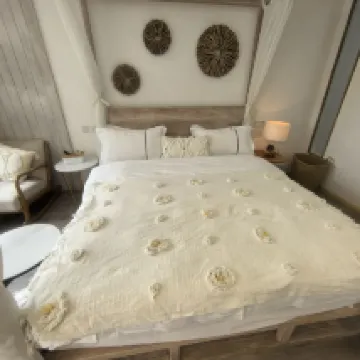 여관 위치가 좋고, 방은 아늑하고 깨끗하게 꾸며져 있었어요. 침구도 부드럽고 청결했고요. 사장님이 정말 친절하시고, 침대 두 개를 붙여주시기까지 했어요. 밤에는 세심하게 야식도 준비해주셨고요. 여관에는 고양이 두 마리가 있는데, 한 마리는 가필드 고양이고 다른 한 마리는 아메리칸 숏헤어 같아요. 정말 쓰다듬기 좋았어요. 아이들이 나갈 때나 돌아올 때마다 꼭 고양이들을 쓰다듬고 가야 할 정도였답니다.