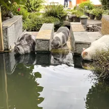 서비스도 세심하고 작은 마당도 아름답습니다. 마당에는 다리가 짧은 살찐 고양이들이 있습니다. 세 살배기 딸아이가 B&B에서 제공하는 '욕심쟁이 새끼 고양이' 그림책을 좋아합니다. 집에 오면 딸은 아직도 라이브로 고양이 정원에 가는 것에 대해 이야기하고 있습니다.