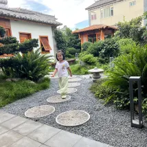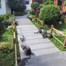입구부터 너무 예쁜조경에 기분이 좋았고 숙박이라고 하니까 입구에서부터 2층까지 캐리어 들어주시고 방 설명해주시고 고양 이가 4마리 정도 있는데 자유로이 돌아다니니 아이들이 너무 좋아하고 방깨끗하고 뷰도 좋고 변기커버 옷전용 드라이어는 숙박처에서 첨보는거였는데 잘썼어요.다만 중국인들 문화?때문에 …(문을열고 생활하는) 옆방들 때문에 하루는 엄청 시끄러웠어요. 케이프같은 전통옷이랑 모자 우산등등 빌릴수있는게 많은것도 좋았어요