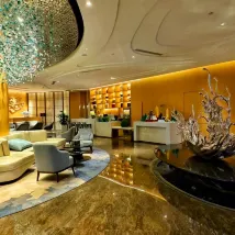 호텔 주변 환경은 조용하고 깨끗했습니다. 층 담당 직원분들도 매우 친절했고, 매일 신선한 과일과 밤마다 은이버섯탕(백목이탕)을 서비스로 받을 수 있어서 좋았습니다. 객실은 넓었지만 화장실이 너무 작아서 아쉬웠어요. 조식 메뉴 종류는 평범한 수준이라 호텔의 명성이나 가격대에 비하면 부족하다고 느꼈습니다. 여름 성수기에는 객실 가격이 비싸니, 비수기 방문을 추천합니다. 무엇보다 호텔 33층에 위치한 오션뷰 전망대는 정말 최고의 하이라이트였습니다!