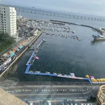 주변에 요트 클럽이 많아 스노클링이나 바다낚시를 즐기러 오신다면 숙박하기 좋은 위치입니다. 밤에는 요트 로드를 따라 싱하이 광장까지 산책할 수 있습니다. 해상 대교 조명쇼를 보시려는 분들은 굳이 싱하이 광장 맞은편 플랫폼에 붐빌 필요가 없습니다. 요트 로드를 따라 걸으면 내내 대교가 잘 보입니다. 저희는 사람이 너무 많아서 그 플랫폼으로는 들어가지 못했습니다.