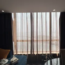 호텔은 시설이 조금 낡은 편이었고, 방은 크지 않았습니다. 오션뷰 룸은 전망은 좋았지만, 창문 유리가 너무 더러웠습니다. 암막 커튼이었는데도 빛을 완전히 가려주지 못해서, 개인적으로 이런 틈새로 빛이 새어 들어오는 걸 좋아하지 않아 아쉬웠습니다.