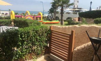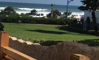 Beautiful apartment in small Riad facing the sea with terrace splendid view if sea, 40 minutes from the airport, secure residence 24/24, separate pools for children and adults facing the sea, surfing, entertainment in the high season, play area children. 10 minutes to the center and 5 minutes to the small port also very nice restaurants next door, access to the beach.