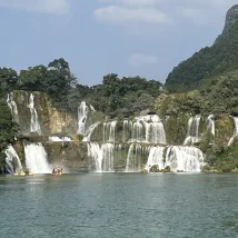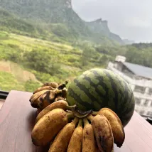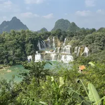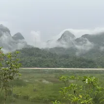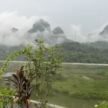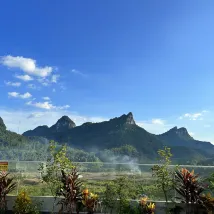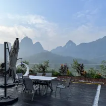 쿤밍으로 가는 길에 더티안 폭포를 보고 하룻밤 묵게 되어 매우 기뻤습니다. 호텔에는 아름다운 뒷마당이 있고 개 모양의 베트남 산을 마주하고 있습니다.