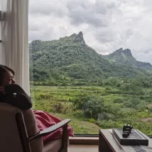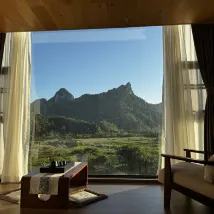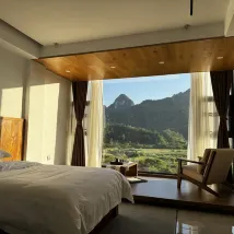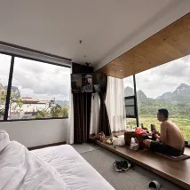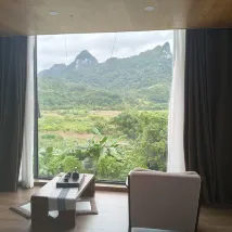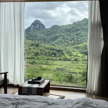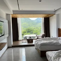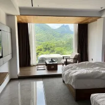디자이너 스타일의 호텔이 가득하며 창밖으로 카르스트 풍경이 보입니다. 눈앞에 펼쳐지는 녹색의 촉감은 천장부터 바닥까지 내려오는 대형 창문과 외부 테라스가 있어 육체적, 정신적으로 색다른 경험을 선사합니다. 전망이 훌륭합니다. 객실은 깨끗하고 완벽합니다.