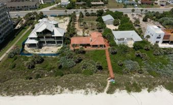 Direct beachfront home! Enjoy the huge kitchen with family while cooking meals, grilling a fish you caught on a charter or playing cards. The large bedroom rooms, spacious decks and the World's Most Famous Beach make this the perfect family getaway. Enjoy use of the golf cart to beebop around town (additional fees may apply). Walk out the back door and see the dolphins play as you sip your coffee. Enjoy a rocket launch while roasting marshmallows over the fire pit or grab a boogie board and show the kids how it's done. Plenty of parking and large bathrooms, this fully stocked home makes it easy bring your suitcase and start playing in the sand. Private walkway to toes in the sand. We wanted to share a quick update regarding the property. Since the hurricanes, we've completed extensive work, and we're happy to report that the house is in excellent condition.