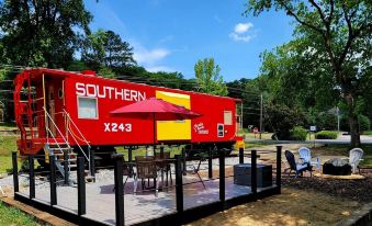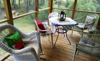 Enjoy the smell of woods, the sounds of the wind, the echo of the train as you nap on the hammock at the pond of our first cottage, "Hitherside". Harmony with nature awaits for you.