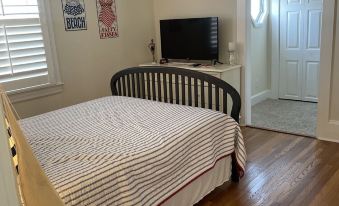 Experience the beauty of Deltaville,VA by sleeping in the heart of it. The Deadrise Inn is within walking distance to the best local boutiques and charming cafes. This 1940’s home was recently renovated, Sleeps 12. 6 bedroom (2 are semi-private) and 2 full bathrooms (1st floor bath has handrails and shower seat) Large living room with gas fireplace and 50in SmartTV. Updated kitchen & coffee bar. Backyard gazebo, outdoor dining table, grill and games. Plenty of parking! Community pool short bike ride $7/person daily fee. Free tennis court and playground as well.About pets:No pets allowed.About checkOut:Check out before 10:00 AM.About children:Children allowed: ages 0-17.About checkIn:Check in after 4:00 PM.About smoking:Smoking is not permitted.About minBookingAge:Minimum age to rent: 25.About events:Events allowed: family gatherings, birthday parties, weddings.Maximum event attendees: 20.