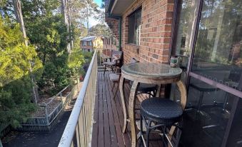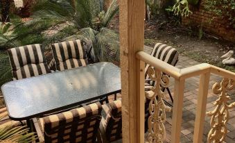 Private north facing courtyard with 6 seater outdoor setting and extra seating. Large gas BBQ, (cute resident lizards!) and tap for rinsing sand off if returning from beach to this front entrance.