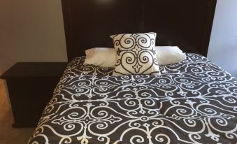 The spacious unit is 998 sq. ft. There is a master's BR (approximately 150 sq. ft.) which is NOT accessible to guests. Please respect this requirement. More than 845 sq. ft. are available for occupants to enjoy. The den/study room was converted into a comfortable sleeping area. A queen-sized bed, chest of drawers, nightstand, and maple bookshelves are found. An 18-inch inflatable queen-sized air mattress (Coleman Brand) is available if needed. The large living room has a table or desk that can be used for work-related activities. It has an LED lamp w/ a USB connection. The 40" SmartTV has DirecTV channels. To turn the TV on, use the grey remote control and press the home button to access Netflix, Amazon Prime Video, and HULU/Disney+/MAX. To switch to HDM1 or DirecTV channels and volume, use the black/white DirecTV remote control.