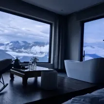객실 유형은 모두 눈 덮인 산 풍경을 바라보고 있습니다.
