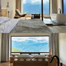 매장은 메리여신봉(Meri Goddess Peak)을 바라보고 있으며, 모든 객실에서 눈 덮인 산을 바라볼 수 있습니다. 최상층에는 촬영을 위한 장식이 많이 있으며, 최상층에서 메일리의 사진을 찍는 것은 필수입니다. 돈을 잘 썼네요. 다음에 여기 오면 일조금산을 볼 수 있었으면 좋겠어요.