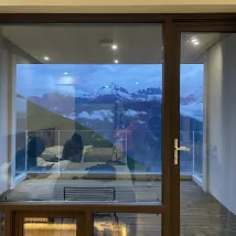 혼자 운전해서 이틀 연속 묵었는데, 묵기 전 2일째 무턱대고 방을 예약한게 아쉬웠습니다. 전체적인 전망은 말할 것도 없지만, 전망이 특징인 주택형으로서, 예약 시 주의하세요! 그의 큰 유리를 청소하려면 외부 걸이 레일이 필요합니다. 제가 머물렀던 날, 유리 외부에 진흙 얼룩이 있어 풍경을 볼 때 문제가 발생하기 쉬웠습니다. 그리고 바닥은 아치형이었는데(다음날 방을 바꿨을 때 이모님이 계셨다는 걸 알게 됐어요. 바닥은 대걸레로 청소하는 게 당연지사), 눈 덮인 산을 바로 볼 수 있는 커다란 유리 외에는 아무것도 없어요. 이 아파트의 또 다른 특징은 화장실과 샤워실이 현관문과 바로 마주하고 있다는 점입니다. 문을 열면 시야가 막히지 않지만, 유리가 투명해서 프라이버시가 보장됩니다. 가난한.