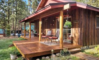 Relax and recharge at this cozy cabin with hot tub. The cabin is new with rustic mountain cabin decor. Close to hiking, Bend, Cascade lakes and Crater lake. The Pinecone cabin is tucked away at the end of a quiet street surrounded by Ponderosa pines. The yard is fully fenced and gated. Enjoy coffee snuggled up near the warm wood pellet stove or stream a movie on Roku Netflix, Prime video, Paramount+ and MAX included, and watch Directv for local weatherand news. The back gate leads directly to miles of walking, biking and atv trails to explore the pine forest.