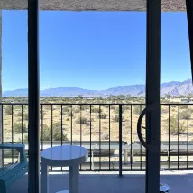 객실에는 발코니가 있고 밖에는 사막 풍경이 보이는 멋진 호텔입니다. 호텔 중앙에 수영장과 온천 수영장이 있는데 아쉽게도 우리는 로스앤젤레스에서 오는 길에 교통 정체로 인해 너무 늦게 도착해서 수영을 할 수 없었습니다.