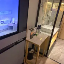 喜歡酒店的建築風格,木質調讓人感覺很舒服,酒店裡的香味也很舒服,環境很好,很適合拍照,房間也很大,很安靜,超大的鏡子適合拍照,設備齊全。每天都有保潔來打掃衞生,很贊。