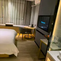 酒店外觀大氣,大堂寬敞明亮且裝修精緻,讓人一進門就感覺很舒適自在,營造出一種高級又温馨的氛圍。床品柔軟舒適,彷彿躺在雲朵裏,房間空間寬敞,佈局合理,還有充足的收納空間,讓人住得很愜意,房間一塵不染,各個角落都打掃得乾乾淨淨,公共區域也整潔有序,沒有絲毫的雜亂。