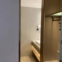방은 조금 작지만 여전히 매우 세련되고 깔끔합니다. 서비스도 매우 좋습니다. 방의 향수가 조금 더 강하고 가격 대비 성능 비율이 좋습니다.