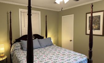 Our cottage is directly in front of Auction Charleston Antique Mall. It is centrally-located on a main road in historic Summerville. Sleeps 6 people maximum with two queen beds and a full bed. Grocery stores & fast food just down the road about a mile in either direction. Close to Summerville and Charleston. Full kitchen, full bath, wifi, Smart TVs, & 100's of dvds.