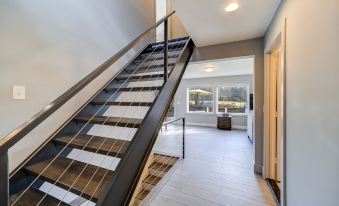 We had an amazing stay here! The house and property are lovely: the house is compact, cozy and well maintained with big sliding doors in the dining/ sitting areas that open to a wide deck with incredible views of the lawn, river and passing wildlife. (Cardinals, blue jays, heron, osprey and two magnificent bald eagles kept us company all summer long.) The two bedrooms upstairs and one downstairs are all very comfy; there's a small office that made WFH possible and lots of amenities too - the foosball, bocce court and horseshoes were in constant use. The pool is a short walk across the grass and it was delightful to swim under big open skies with an elegant weeping willow nearby. Markets were about 10-15 minutes away, great pizza, burger, bakeries and ice cream spots are also nearby and lots of options for hikes/ nature walks. It was the perfect balance of quiet and connected - highly recommend!