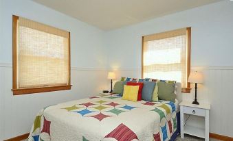 Our cute little place is soundfront. There's a bench swing in the tree behind the house where you can swing by the water's edge, and there is a set of stairs that lead from the back yard down into the water. The beach is a short walk away on the other side of the island - it's a 5 minute walk. There's a wide, paved bike path that passes in front of our place and leads into the little town of Duck, about two miles away.