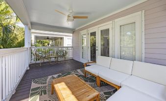 Centrally located in the Florida keys, this beautiful three-bedroom home is steps away from fishing, restaurants, boat rentals and water sports. The property features a private and lush backyard filled with your own private pool, loungers and outdoor games. There are two balconies, two shaded porches and plenty of outdoor seating. In the evening, unwind with a refreshing drink under the outdoor lighting or in the heated pool. The interior features a fully equipped kitchen, flat screen TVs in every room, board games and a bluetooth speaker. Coming with children? The villa includes a high chair, pack and play, bed rails, booster seat, baby gate and kids dishware. If you are forced to work during your vacation the property has an office with a view and high speed internet. Even on rainy days there are streaming services and board games for indoor entertainment. There is also a private washer and dryer to take care of everyone's laundry, so you can afford to pack light for your trip.