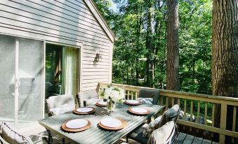 Enjoy the experience of entering a cozy cottage to find beautiful wooded views from the balcony of the main floor bedroom or the back deck and think to your self “it’s time to relax”. With your safety and comfort in mind the home is cleaned and sanitized with hospital grade sanitizer.
