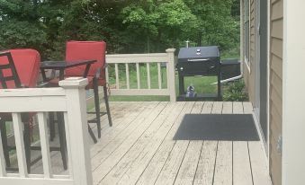 Views of the waterfall and lake Galena in the fall, winter and spring. For the spring, summer and fall we have a fire pit and 4 chairs for you to use, just bring along your firewood! We kindly ask that you put the chairs on the gravel next to the deck, the landscapers will not cut the grass if the chairs are in the way. We have a charcoal grill off the back deck. We ask that you bring your own charcoal and clean after each use. This home was just fully remodeled. All new furniture, flooring, cabinets and bathrooms. You will have access to 6 proxy cards to enter into the Owners Club. Parking is on site, WI-FI, all smart TV's to login into your NetFlix acct. Each of the bedrooms has their own private bathroom. The kitchen is stocked with mostly everything you need. Towels, linens, throw blankets, coffee, creamer provided. Toilet paper, paper towels too