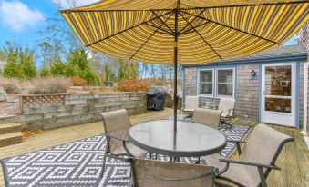 Welcome to Homeport!! This is an excellent rental in the perfect Harwich location, situated in a quiet neighborhood with access to two freshwater lakes. A 300 step 3-minute walk on a dead end gets you to a Great Sands Lake Association beach between the famous Buck's Pond & John Joseph Pond. The house is comfortably furnished and has a uniquely entertaining backyard with a Bocce court and a horseshoe pit to help make your vacation fun. Three bedrooms and two baths will fit nine guests perfectly, and some great amenities complete the package. 2 New Roku TVs are equipped to support your streaming services & AC units throughout will keep you cool. Two full bathrooms and a spacious enclosed outdoor shower with a changing area mean folks won't have to wait for that after-swim shower. The deck has outdoor seating and a gas Weber grill. The three-season SunRoom (the Happy Tapper) is a peaceful place to enjoy your morning cup of coffee or to ring because "it's 5 'o'clock somewhere!" Beach chairs and a beach umbrella are offered for your convenience. The family game closet is full of puzzles and game-night fun to keep you going after dark. 6-minute drive to Red River Beach, 8 minutes to Bank Street Beach, and a 12-minute drive to Chatham's main street for that classic Cape Cod evening stroll. Six minutes to Bud's mini-golf and go-Kart's, and the trampoline park is 2 minutes from there. Ice cream at Sundae School is 7 minutes away, while your morning breakfast burrito can be had at the Corner Store, which is about 6 minutes away. All of that without being stuck in nasty Route 28 traffic. Begin your new summer tradition at Homeport in the Great Sand Lakes Association neighborhood.