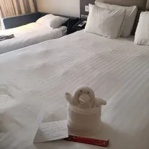 We didn't have any of the food but the room was comfortable and the location was good for us 😊 it's a nice part of town. 20min walk to the centre through a park which was not a problem for us. Lots of eateries around. The gym was okay but basic. The TV couldn't connect to our Airplay which was a bit disappointing. Front of house staff very friendly and helpful 😊