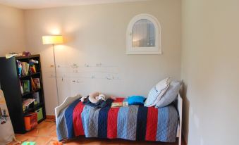 Inside the house, we will appreciate a large space from the kitchen to the living room. Upstairs, there are 3 bedrooms: 2 child bedrooms with a single bed and 1 bedroom with queen mattress. There is another independent bedroom (but still attached to the house) with a double bed.