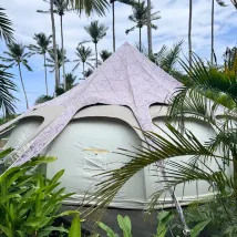 We enjoyed the experience overall. We could hear the waves from our tent when falling asleep and the beach is gorgeous. Air conditioning worked well in the tent. The gym is fantastic and there is also a pool with bar area available for the glamping guests. Having a shared bathroom was not as annoying as we expected, as only 3 tents share bathroom, but some showers never seemed to have hot water. Also the bathrooms could be upgraded as some seemed unfinished (ceiling / walls / locks). It would be nice to have clean mugs and coffee / tea refills available everyday.