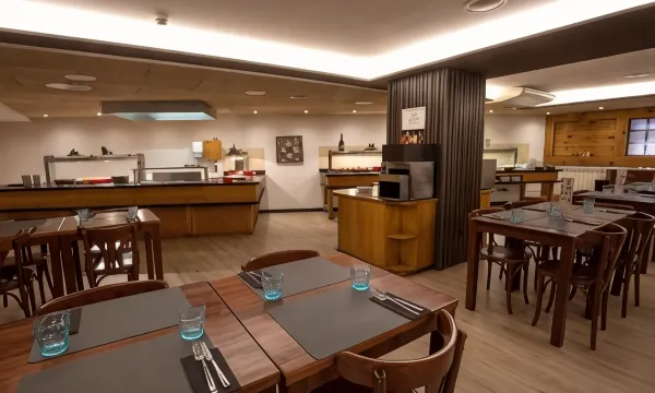 Good hotel, close to the slopes. Very family friendly with a bar that had lots of board games and pool/pinball. Ski locker accessible via a internal lift We were a group of 12 adults and the hotel was perfect for what we needed - sleep, quiet beers, restaurant!. Breakfast and dinner buffet offered the normal range of options, and staff were accommodating and polite. Spa/sauna etc need booking and are extra but otherwise exactly as expected.