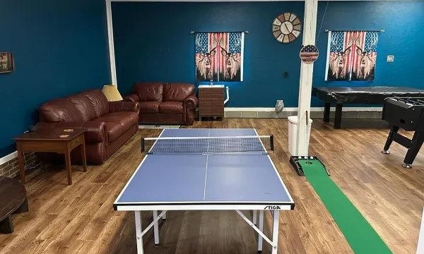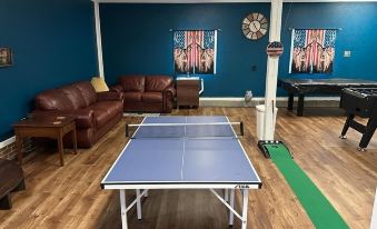 High End air conditioned Game room in the garage - (Pop A Shot) Basketball, Foosball(Kick Brand), Pool table(Olhausen Brand), PacMan, Air Hockey (Artic Wind Brand) and Ping Pong table(Stiga Brand) and Karaoke system and Guitar. There is a sitting area where you can enjoy some TV and music.