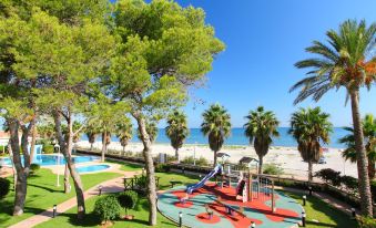 Modern, cosy, comfortable apartment block "Marina Azul", built in 2010. In the district of Playa Almadrava 2 km from the centre of Els Poblets, 9 km from the centre of Dénia, 20 m from the sea, direct access to the beach. For shared use: garden with lawn and trees, swimming pool (20 x 14 m, depth 110 - 210 cm, seasonal availability: 01.Jan. - 31.Dec. pool opening hours: 09:00-15:00 and 17:30-00:00) with internal staircase. Children's pool, outdoor shower, children's playground (slide). In the house: lift. Parking, communal covered parking. Supermarket 300 m, restaurant 50 m, bar, bus stop 100 m, sandy beach 150 m, shingle beach 20 m. Sports harbour 10 km, golf course (18 hole) 8 km. Groups of teenagers on request only. "Marina Azul", 3-room apartment 75 m2. Spacious, very beautiful and cosy furnishings: living/dining room with digital TV, air conditioning and forced-air heating. Exit to the terrace with 1 french bed (150 cm, length 190 cm), bath/WC, air conditioning and forced-air heating. 1 room with 2 beds (90 cm, length 190 cm), air conditioning and forced-air heating. Kitchen (oven, 3 ceramic glass hob hotplates, microwave, freezer, electric coffee machine). Shower/WC. Large terrace. Marvellous view of the sea, the swimming pool and the garden. Facilities: washing machine, iron, children's high chair, baby cot, hair dryer. Internet (WiFi, free). Garage space n 38. AT-449245-A