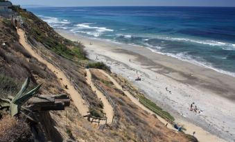 It is a short walk to Coast Hwy where you will find unique boutiques, mouth watering Mexican food, local coffee houses, antique stores, a new and used record store, and so much more! Stroll down a little further on the weekends and stop by the Seaside Bazaar, North County's only open-air market. At night, enjoy home cooking in your oceanfront rental, or check out one of the local neighborhood restaurants such as Calypso cafe, a small place serving up great food with local bands playing every night. Or maybe you would enjoy Bar Leucadian, a neighborhood bar that has been there since 1946, and has live music, pool tables, and no cover charge!