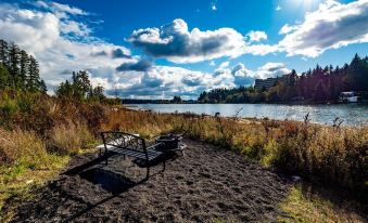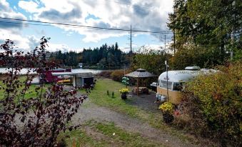 Welcome to our picturesque property boasting stunning views of Dyes Inlet, where the mesmerizing sunrises and sunsets paint the sky with intense colors. You can enjoy these views year-round from our cozy vintage '73 Argosy Airstream. Even with its small size, it has all the comforts you need to work, sleep, and relax. While here, you will also have access to many other features including a private gazebo with a grill, kayaks, lawn games, lots of animals to visit, and an expansive waterfront on 2.8 acres.