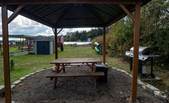 Immerse yourself in the tranquil waters with a leisurely canoe or kayak excursion, or, during low tide, don a pair of the provided rubber boots for an enchanting stroll around the point. Depending on the season, marvel at the presence of seals, sea lions, otters, and even orcas in Dyes Inlet, while a nearby Salmon run adds a natural spectacle. Our intimate cove is a haven for bird enthusiasts, featuring an eagle nest perched on the edge of our property, along with blue herons, numerous ducks, and an array of other bird species.