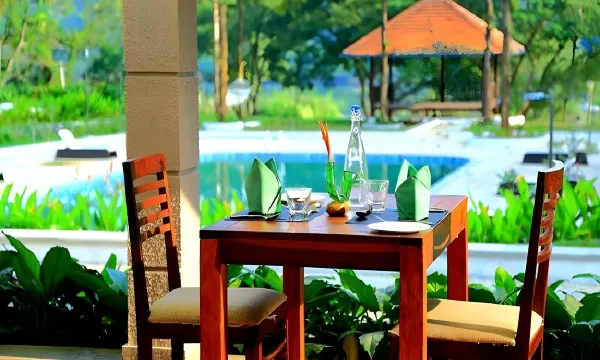 Stayed with my extended family for a night. We booked 7 rooms. The rooms were very spacious and well thought out. The bed is big and comfortable, the bath rooms are big and maintained. The a/c, tv and kettle were all working properly except in one room, which they temporary fixed. The rooms have extra chairs and sofas, the balcony is well furnished with a good view. The property is not large and has limited area for walking around. The pool is decent and well maintained. There is a small play area for kids. The staff is friendly and cooperative. There is no access to the river in front of the resort from the resort itself, since the rocky river can be tricky and dangerous. We had buffet lunch and dinner. The spread is limited by quality good. But I found it very odd that we were all required to take our used dishes and plates ourselves from our table and keep it at an area they designated. Maybe because it was due to a lack of staff, but usually the restaurant staff clear the plates from our tables once we are finished eating. All in all it was a decent stay and good break.