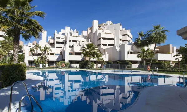 Very modern, beautiful apartment block "Bahia de la Plata". In the district Estepona, in a quiet, sunny position, 150 m from the sea, direct access to the beach, south facing position. For shared use: terraced garden, 2 swimming pools (seasonal availability: 01.Jun. - 31.Sep.). Children's pool, outdoor shower, hot tub. In the complex: fitness room. Parking. Shop 1 km, supermarket 1 km, shopping centre 10 km, restaurant 1 km, bar 1 km, bakery 1 km, pedestrian zone 100 m, bus stop "El Padron" 350 m. Golf course (18 hole) 4 km. Object suitable for 4 adults. Please note: airfield 65 km from the property. "Bahia de la Plata", 3-room apartment 80 m2 on 3rd floor, south facing position. Object suitable for 4 adults. Very beautiful and modern furnishings: living/dining room with digital TV, electric heating and air conditioning. Exit to the terrace. 1 room with 1 french bed, bath/bidet/WC, electric heating and air conditioning. Exit to the terrace. 1 room with 2 beds, bath/bidet/WC, electric heating and air conditioning. Kitchen (oven, dishwasher, 4 ceramic glass hob hotplates, toaster, kettle, microwave, freezer, electric coffee machine). Very beautiful view of the sea. Facilities: washing machine, iron, children's high chair, baby cot, hair dryer. Internet (WiFi, free). Parking. Please note: non-smokers only. VUT/MA/15062 ESFCTU0000290370004445460000000000000000VUT/MA/150629