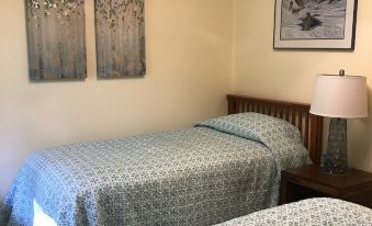 One bedroom has two twin beds and the second has a queen bed. All have comfortable bedding - all of which are washed after each reservation using ALL Free and Clear detergent and Lysol laundry sanitizer.