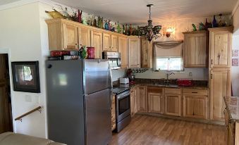Also features a swing bed in the living area.About pets:Pets allowed: dogs less than 20 lbs per pet (limit 2 pets total).Pets must be trained and kept off the furniture..About checkOut:Check out before 11:00 AM.About children:Children allowed: ages 0-17.About checkIn:Check in after 3:00 PM.About smoking:Smoking allowed: in designated areas.Please no cigarette butts in the yard..About minBookingAge:Minimum age to rent: 18.About events:Events allowed: family gatherings and birthday parties.Maximum event attendees: 12,Request that all smoking be outside and no litter..