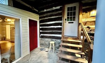 Bedroom 4 is the original part of the house, a log cabin located directly behind the main house. It is attached to the house, however, to access the bathroom, you must leave the log cabin and walk a few steps to the main house. The bathroom is just inside the door of the main house.